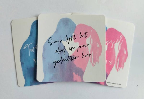 Dit deck bevat 72 kaarten (91 x 91 mm) met liefdevolle boodschappen gechanneld door het Hogere Zelf of de energie van je tweelingziel.